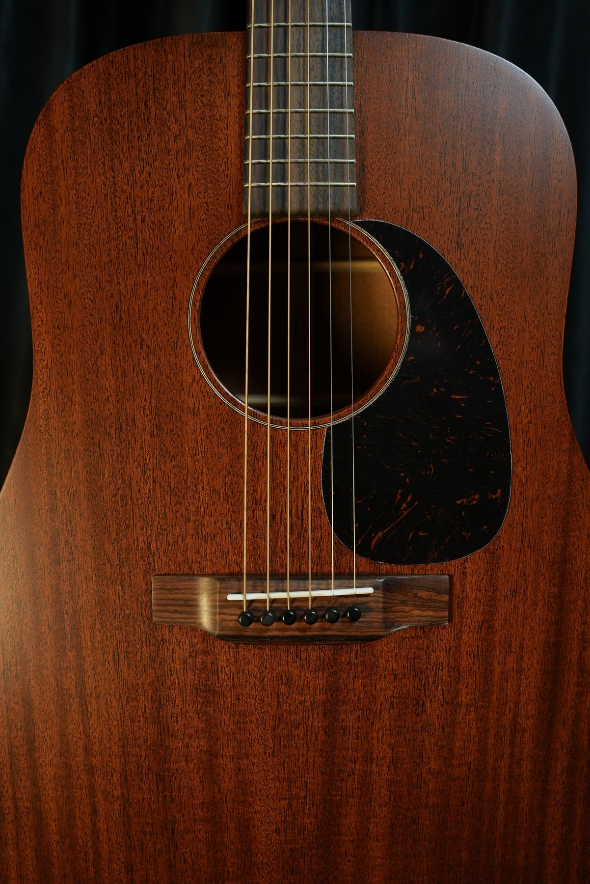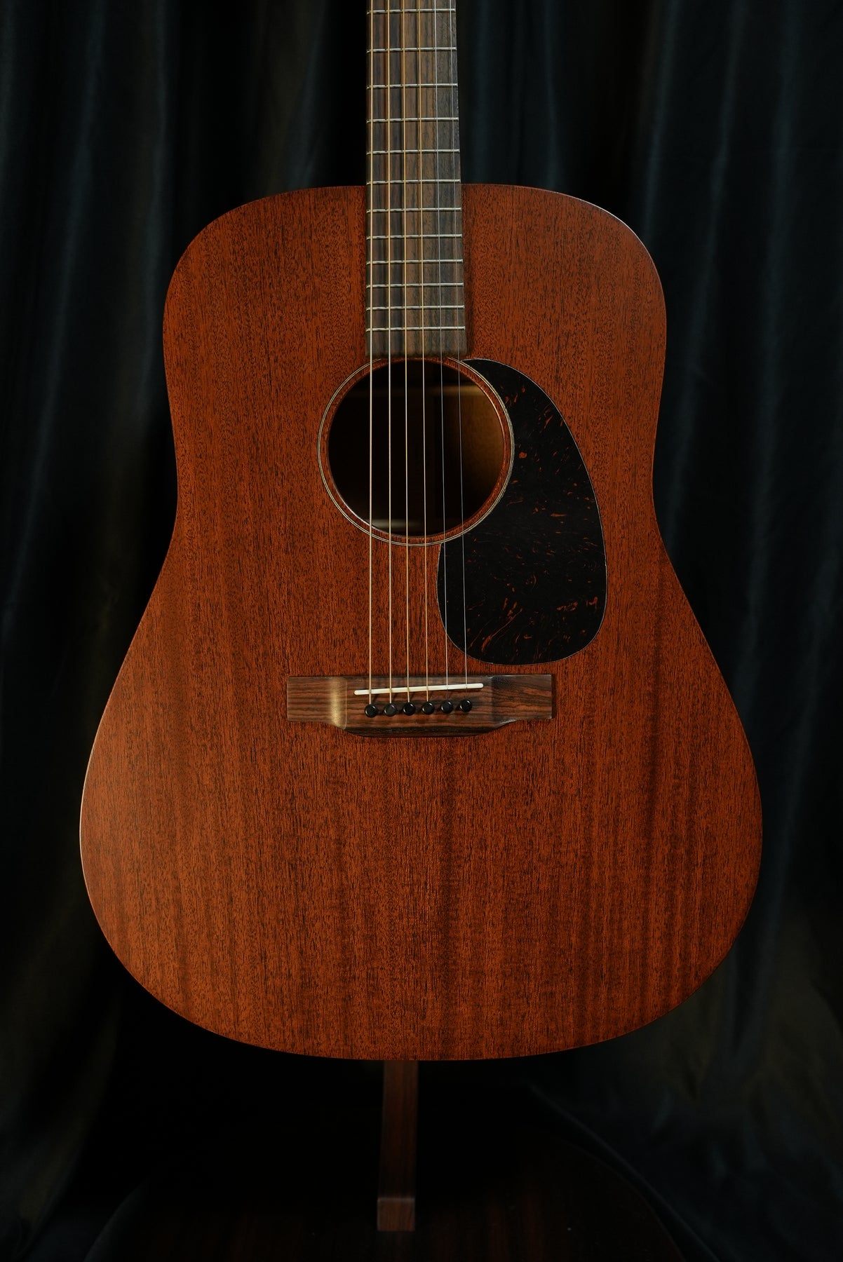 Martin D-15M acoustic guitar, full front view; solid mahogany top, back and sides with satin natural finish